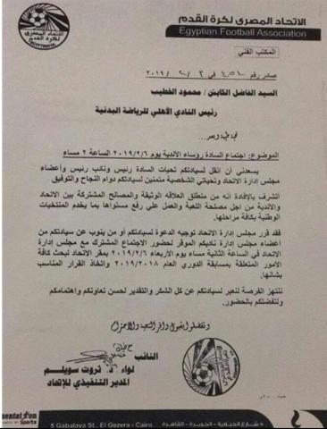 تصريحات مجاهد خالفت الخطاب الرسمي المرسل لأندية الدوري العام، والموقع من المدير التنفيذي لاتحاد الكرة اللواء ثروت سويلم، والتي حملت دعوة مجلس إدارة اتحاد كرة القدم لرئيس النادي الأهلي، لحضور اجتماع بمقر اتحاد الكرة في الثانية مساء اليوم الأربعاء 6 فبراير لبحث كافة الأمور المتعلقة بمسابقة الدوري العام 2018/2019، واتخاذ القرار المناسب بشأنها.