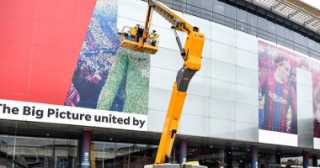ميسى يزين واجهة ملعب باريس سان جيرمان